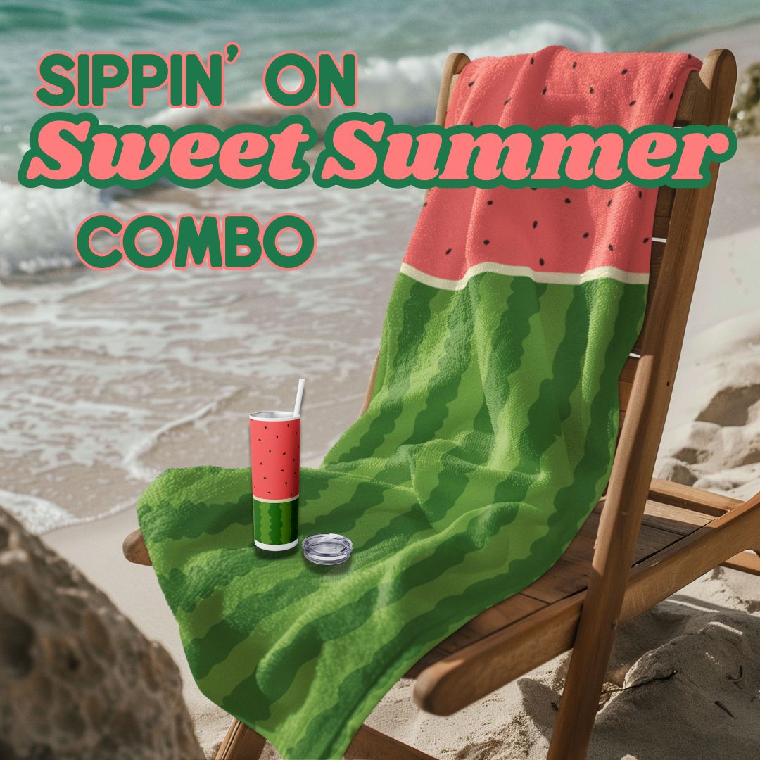 Ready to taste the sunshine? Meet the ultimate summer duo: our juicy Watermelon Tumbler + Beach Towel Set is here to serve serious vibes.